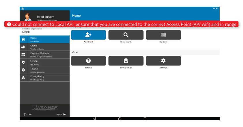 - Keep Tablets in Range: Ensure tablets are within Wi-Fi range and connected to the correct local API. A red banner indicates no connection.